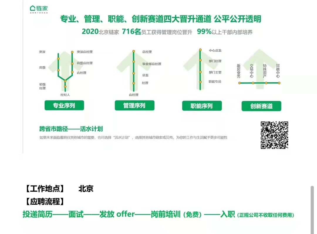 1. 薪酬:实习生无责任底薪 4500 元;毕业生无责底薪 6000 元,入职北京链家 1-12 个月内 A0 实习生,转正后有责任底薪 4500/6000/8000/10000 元,行业超高提佣 30%-70%,上不封顶,入职 1 年平均工资10000 元/月;