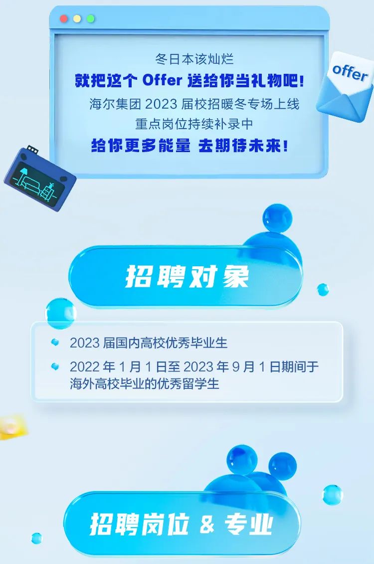 叮咚,海尔集团2023届校园招聘暖冬专场上线~