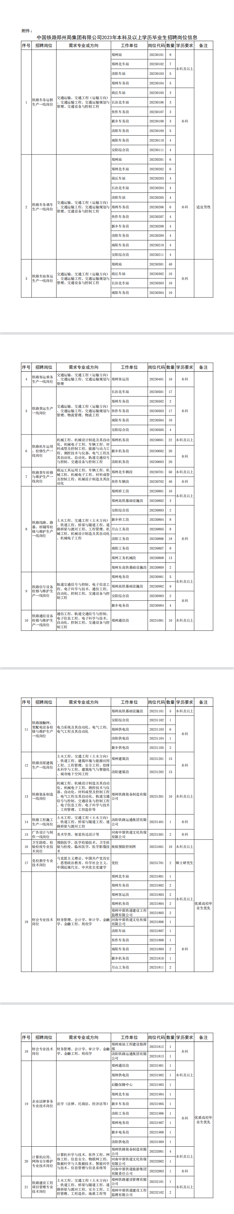 4.专业对口,成绩优良,符合招聘岗位要求的学历、专业等条件;其中序号为1-14号的岗位所学专业是铁路专业方向或所学课程包含铁路专业课程的优先。