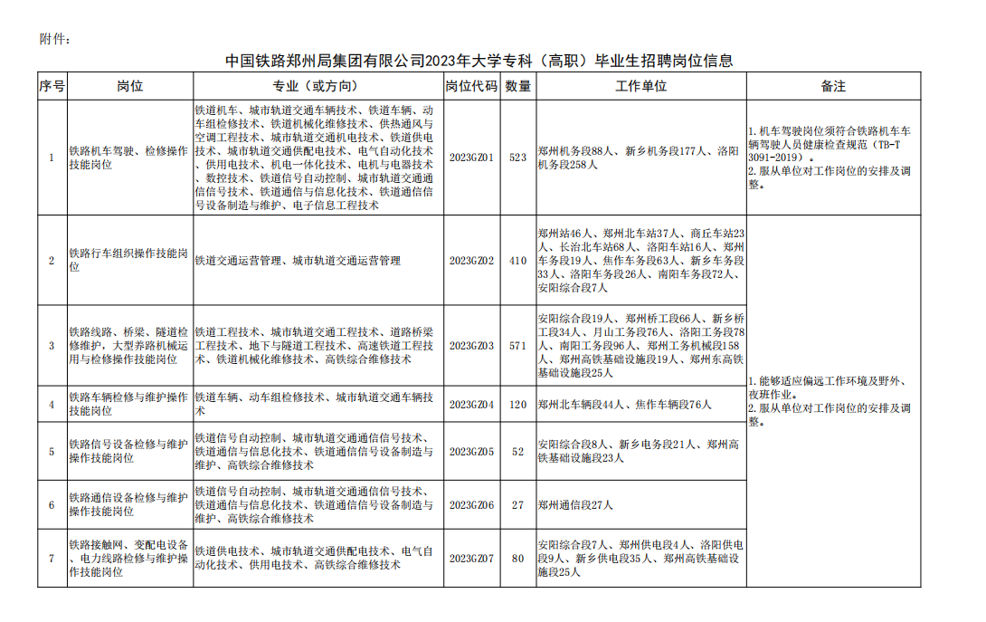 根据企业发展对人才的实际需求,中国铁路郑州局集团有限公司拟招聘全日制普通高等院校大专(高职)学历毕业生,现将有关事项公告如下:
