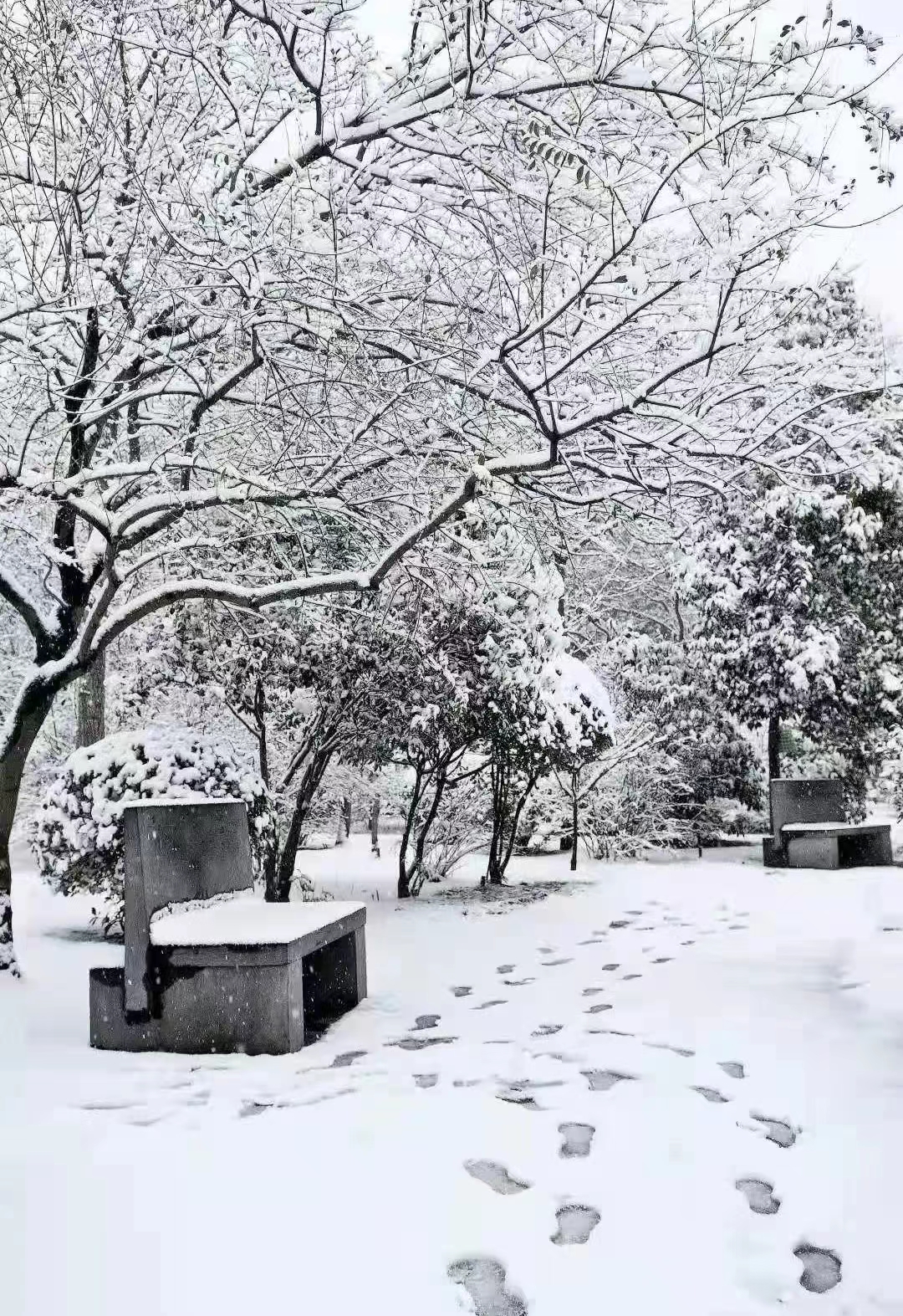 新的一年很快迎来了那场大雪。皑皑白雪覆盖了苏式砖瓦房的红色屋顶、教学楼前玲珑的花园、小路、操场,目光所及皆是一片洁净。我在宿舍里写着毕业论文,也因工作尚无着落而隐隐不安。抬眼望去,窗外梧桐虽枝干光秃,却依然挺拔,层层琼枝、树树梨花,淡定自若、气度盛大。瞬间,大学四年的所思、所感、所悟、所得缓缓涌入心头,“明德自强、求是力行”,冰与雪终究会融到泥土的深处,或化为滋养万物的雨露,待春风再起,又是满目郁郁葱葱。
