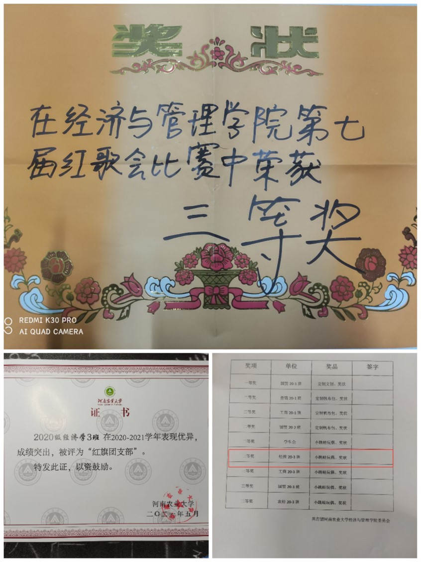 高俪畅获院级“优秀学生干部”、校级“军训标兵”;