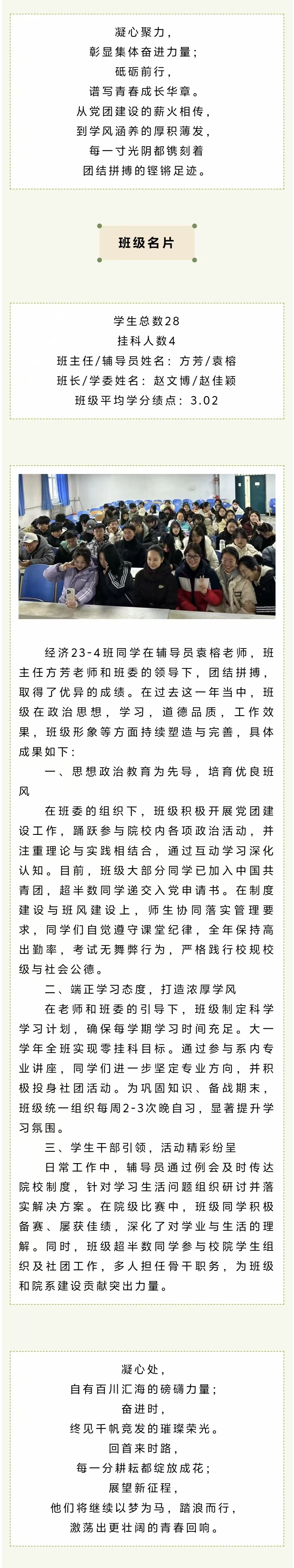 学霸班级(三)丨凝心聚力,砥砺前行——经济23-4班