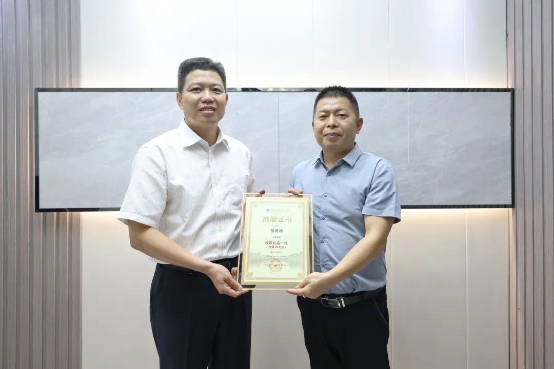 胡明忠对熊明师在学校建校120周年之际的慷慨捐赠表示感谢,为校友继承发扬母校精神,拼搏创新为社会发展贡献农大力量感到由衷自豪。他表示,校友的成长离不开母校的培养、母校的发展更离不开校友们的支持。校友联络办公室校将致力打造校友和学校情感的共同体、事业的共同体、发展的共同体,更好地服务学校,服务校友,服务社会。