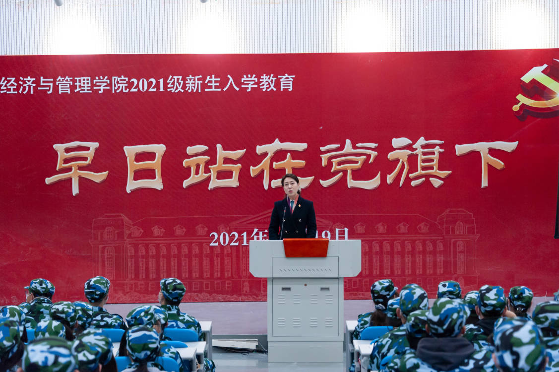 党委副书记方芳在龙子湖校区大教室2为2021级新生讲授“早日站在党旗下”专题党课。2021级全体新生积极到场参加。