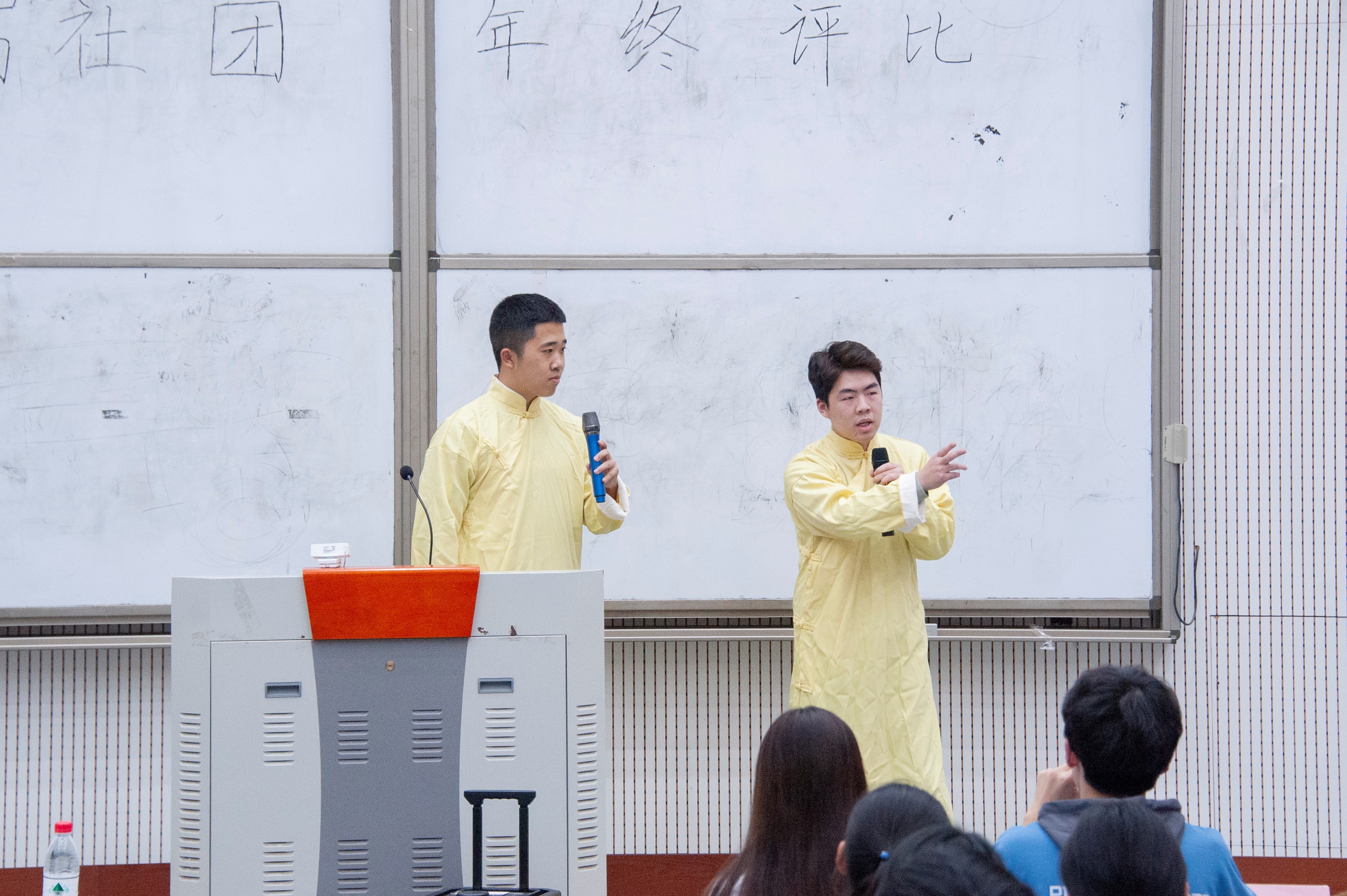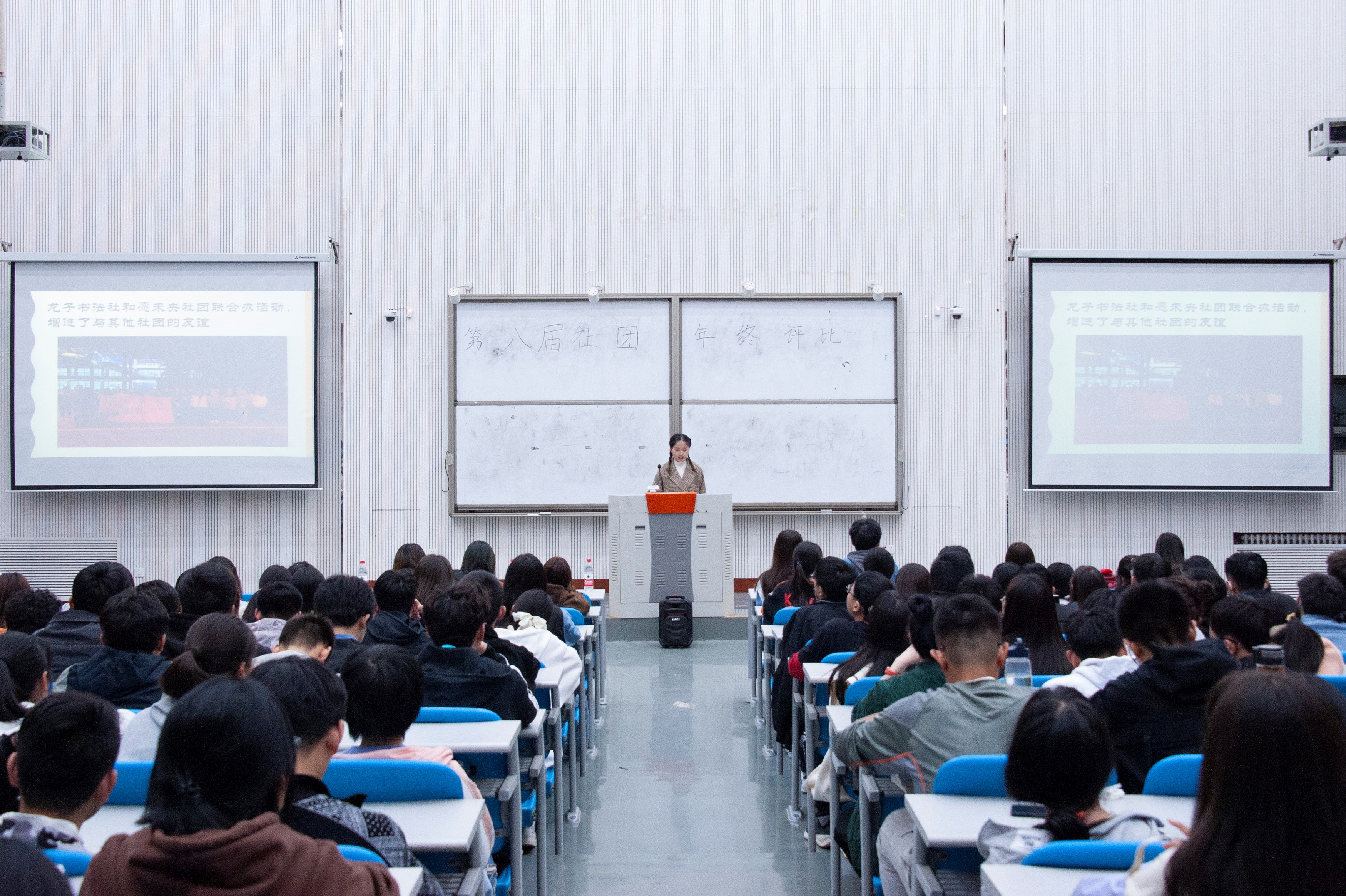 活动开始前,评委老师、各社团成员和新生依次入座。在主持人宣读了评比规则后,此次社团评比活动正式拉开了帷幕。活动伊始,社团部部长韩紫绿首先简单介绍了近来社团的发展状况,围绕工作章程、工作总结以及社会影响力等三个方面肯定了过去一年里各个社团的工作成果,同时也向大家陈述了未来一年的工作计划。