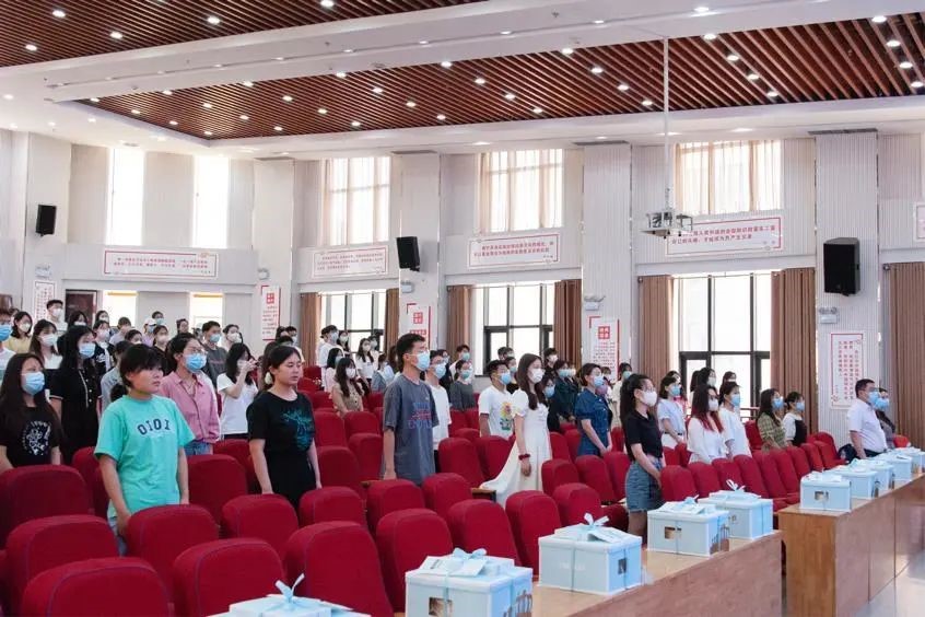 会议伊始,全体师生齐唱国歌,在洪亮的歌声中,此次活动拉开帷幕。首先,院党委书记牛青杨发表讲话,他介绍了此次活动的目的,并对学生提出以下几点希望:一、站稳政治立场。明确“从哪里来,到哪里去”的政治立场,坚持全心全意为人民服务。二、胸怀国之大者。作为青年党员要胸怀民族复兴、国家前途命运、人民幸福的使命和担当。三、锤炼过硬本领。青年党员应当读万卷书、行万里路、交天下友,做到知而行之。四、勇于担当作为。青年党员需立德立功立言,起到示范作用。五、严格要求自己。高站位、观全局、有本事、有作为、严要求,在场毕业生党员对未来发展有了更明确的方向。随后,党委书记牛青杨带领在场老师、学生党员重温入党誓词,在一声声铿锵有力、掷地有声的宣誓之后,牛青杨进一步强调要坚守初心、对党忠诚、不负人民。接着,全体领导老师与2022届毕业生党员共过政治生日,手写毕业寄语卡片,送上祝福与嘱托。会上,毕业生党员还共同观看了红色电影,大家在曲折坎坷、振奋人心的电影情节中,重温红色经典,激荡家国情怀,进一步坚定了要将爱国精神融入学习生活,将青春奋斗融入党和人民事业的决心。