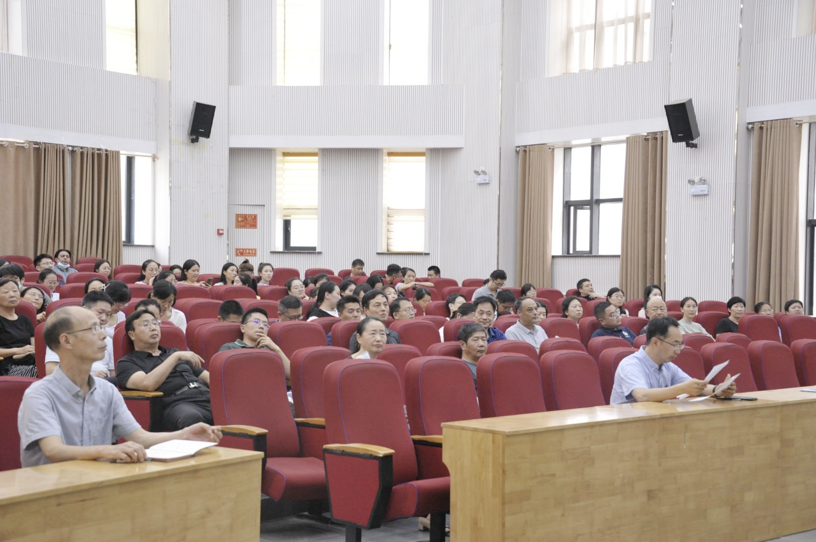 领导班子及全体教职工参加会议,会议由院党委书记王宏立主持。