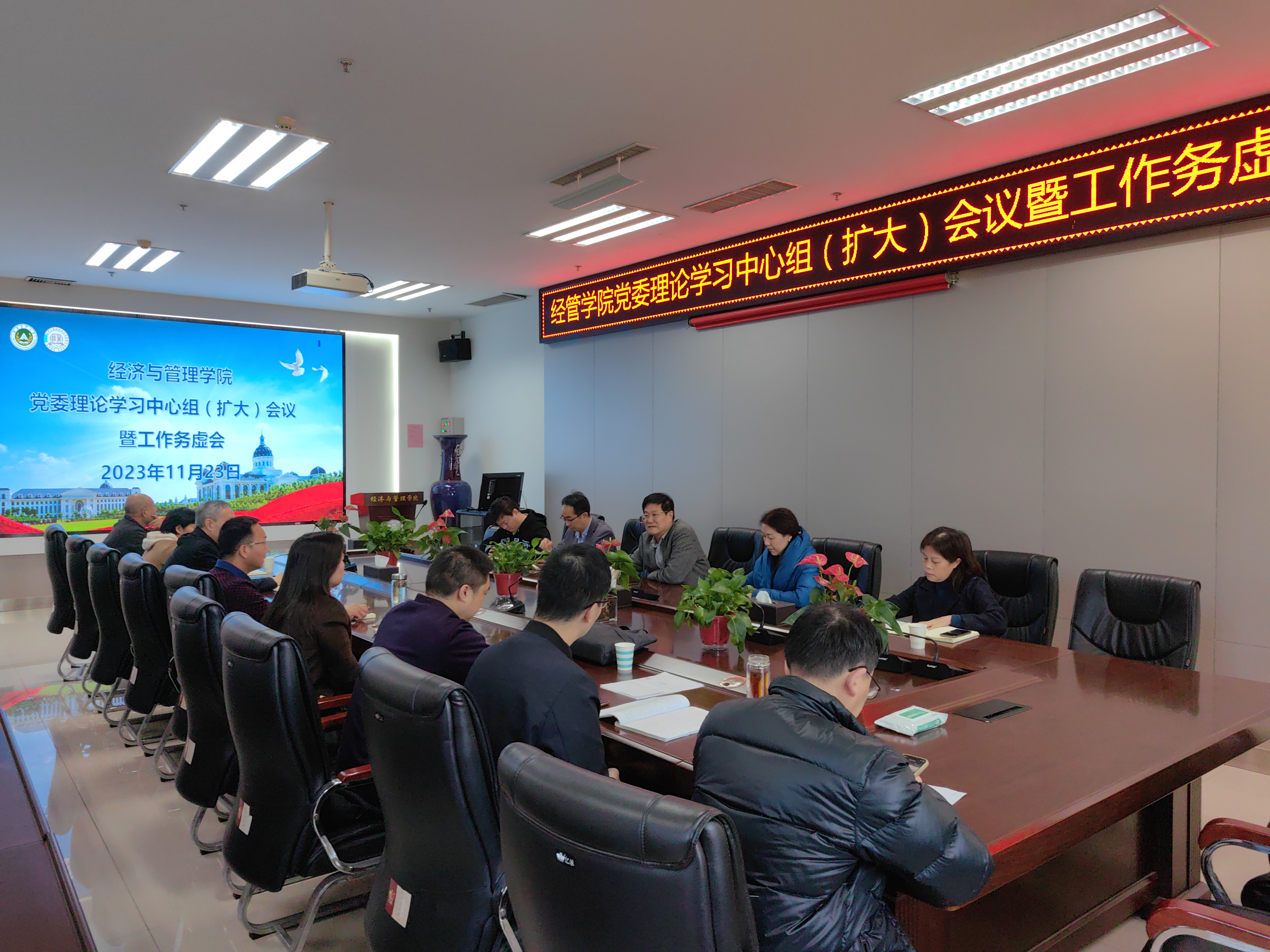 党委在龙子湖校区繁塔楼A215会议室召开党委理论学习中心组(扩大)会议,院党政领导班子、支部书记、系主任、学科带头人参加会议。会议由院党委书记王宏立主持。