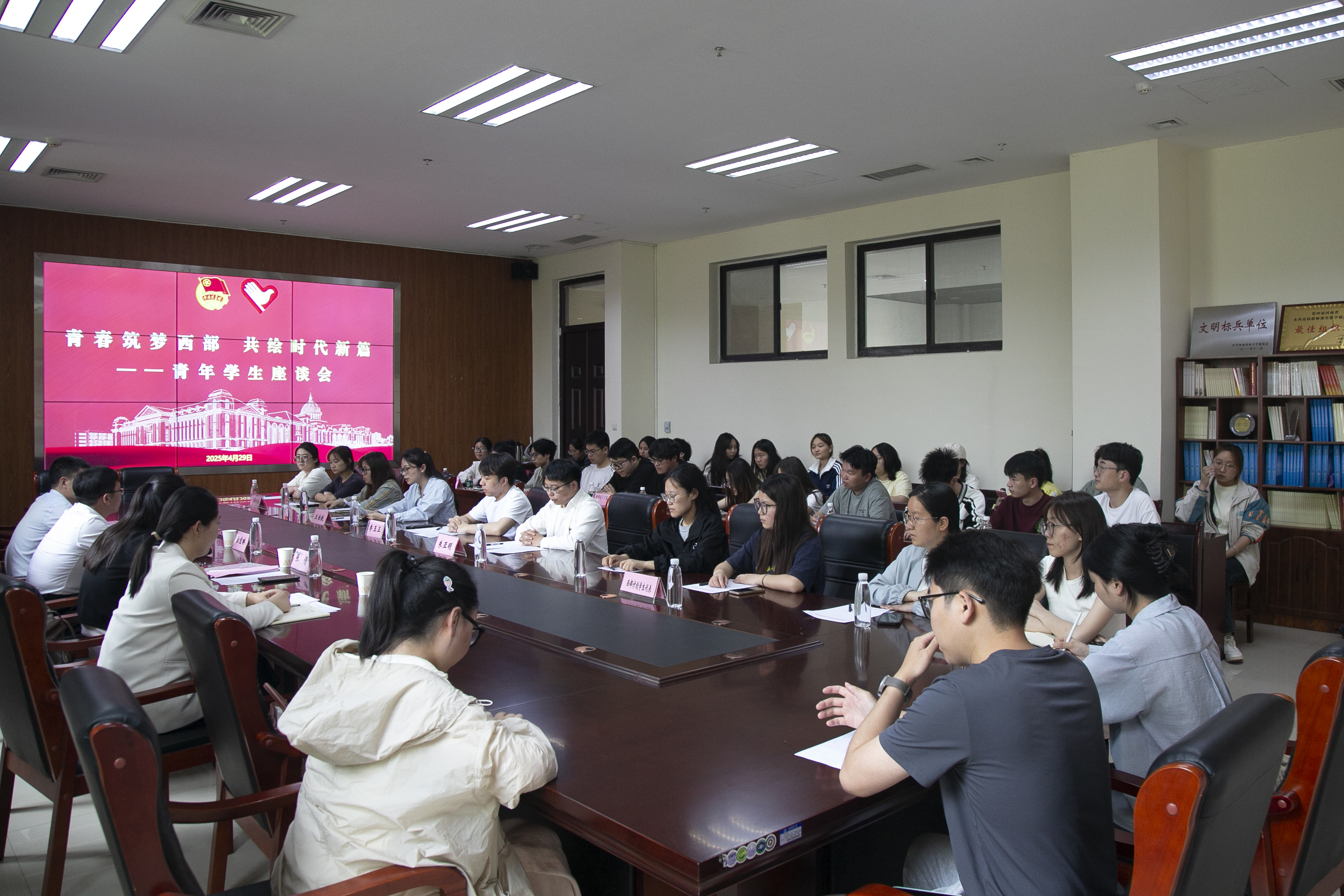 相关负责老师出席活动,校青年志愿者协会、学院报名2025年西部计划志愿者代表等参加活动。座谈会由校团委副书记张倩主持。
