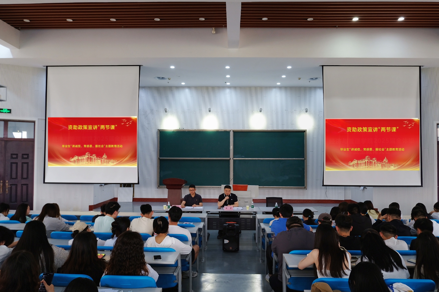 余月圆则针对就业与档案转接问题进行解答,详细说明了“三方协议”的签订流程及具体要求、毕业生人事档案的保存、转接等内容,要求大家认真落实相关事项,同时也对资助政策“两节课”和征兵工作进行了宣讲。接着,宋宇结合当前就业形势进行分析,并提出三点宝贵建议:一要校准人生坐标,树立科学择业观;二是拓宽发展路径,构建多元就业格局;三是厚植“五个一”家校情怀,强化使命担当。接着,学生代表李玉正宣读《文明离校倡议书》,倡导同学们文明离校,以良好风貌告别校园,为求学生涯画上圆满句号,也为未来就业与发展开启积极新篇。