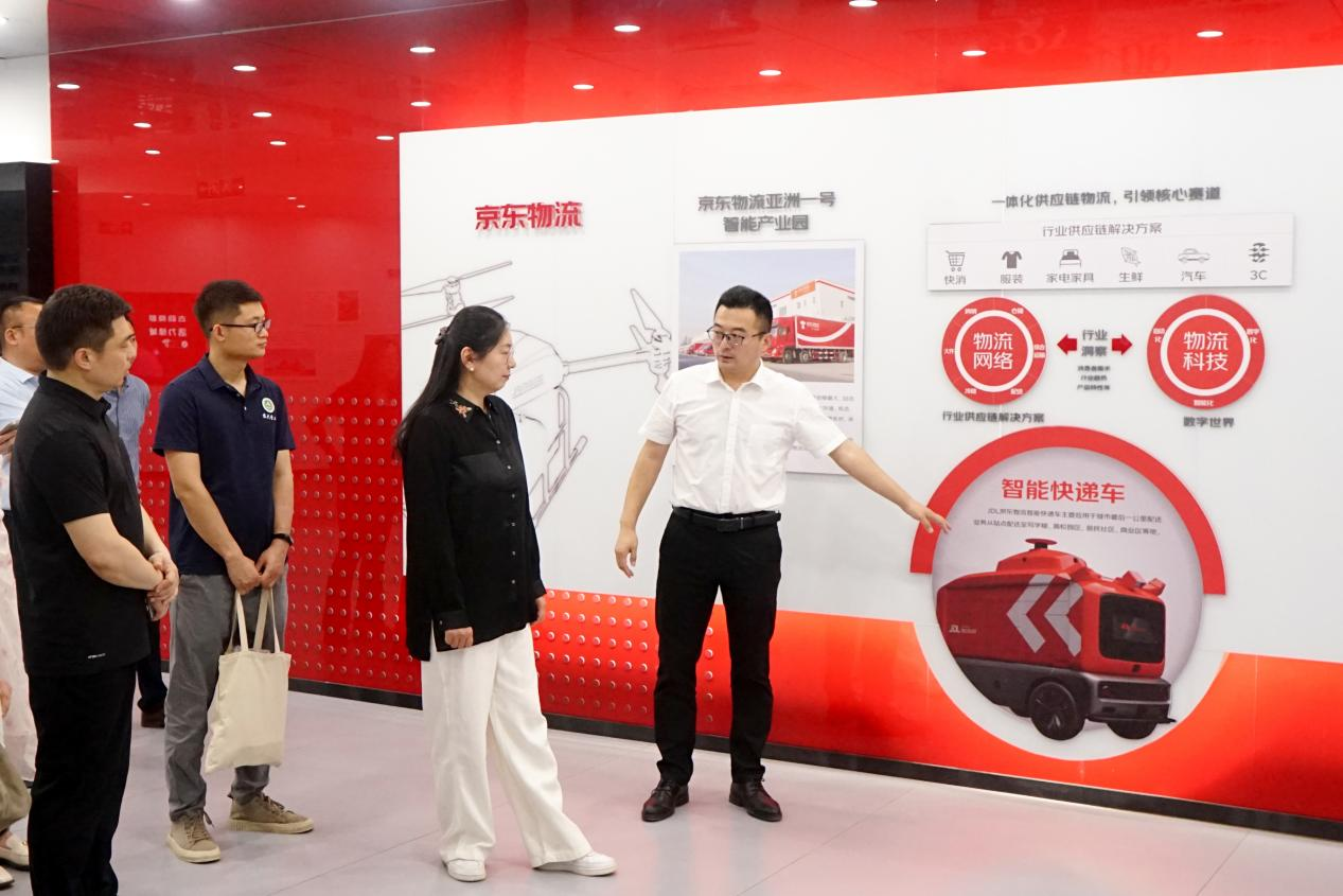 学院一行人首先来到了京东数字经济展示中心。在这里,与京东郑州基地负责人耿光辉等企业代表进行深入交流,通过观看图例、视频等多种形式,详细了解了京东科技在数字经济领域的创新成果和应用实践。在参观交流的过程中,李蓓蓓与企业方面就产学研合作、人才培养、技术支持等方面进行了深入探讨,共同探讨了合作的方式和机会。