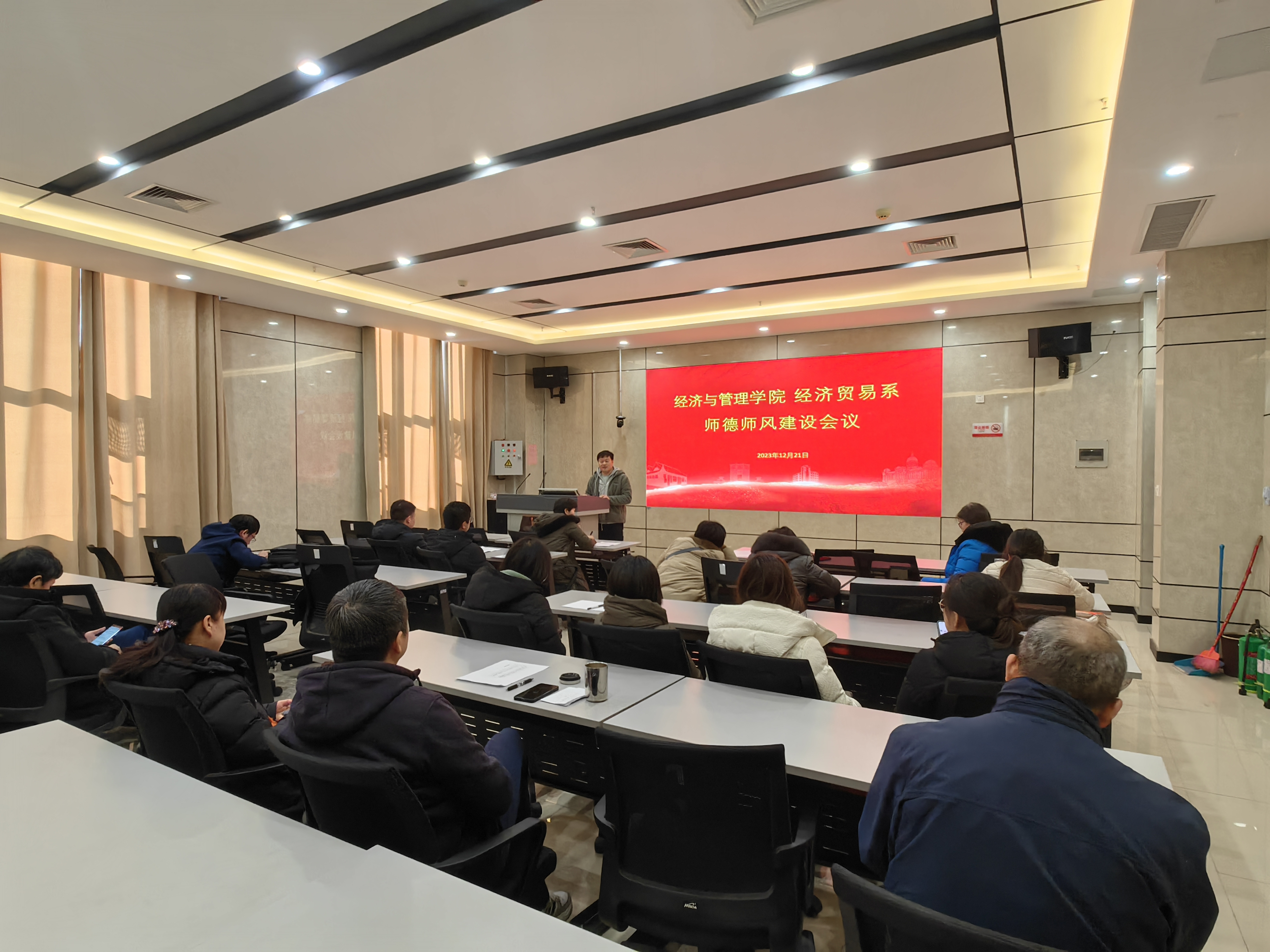 会后,各系分别召开师德师风建设专题会议。在系主任的带领下深度学习了师德师风相关文件,并就教学管理、教书育人、行为规范、存在问题进行深入交流和讨论,大家纷纷表示要切实肩负起“立德树人、教书育人”的光荣职责和神圣使命。