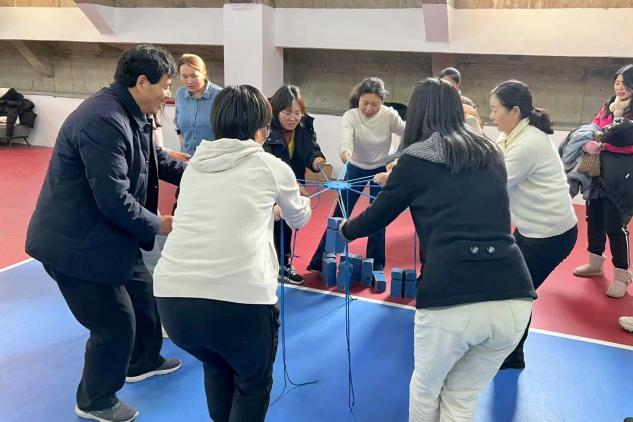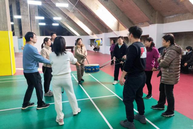 本次趣味运动会包括“千里传珠”、“同心击鼓”、“四人五足”、“环环相扣”、“合力建塔”五个项目,不仅考验着教职工的身体素质,更考验着团队协作能力和沟通能力。活动开始后,每位老师都积极投入、全力以赴,用实际行动诠释了合作进取的团队精神,不断将现场气氛推向高潮。场外,观战的老师纷纷加油、喝彩,现场时不时迸发出一阵阵笑声与掌声,每个人的脸上都洋溢着幸福和快乐。此次活动的每个项目都饱含了趣味性、充满了挑战性,现场气氛热烈又紧张,教职工们不仅赛出了个人风采,更展示了团队的凝聚力。在欢声笑语中,此次活动圆满结束。