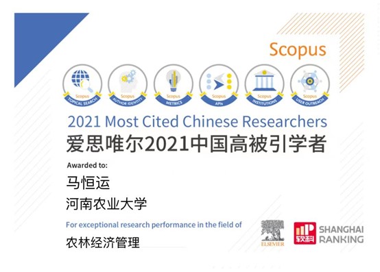 (通讯员:宋春晓) 2022年4月14日,全球性信息分析公司爱思唯尔(Elsevier)正式发布了2021年中国高被引学者(Highly Cited Chinese Researchers)榜单。其中,农林经济管理学科全国共有5名学者入选。教育部长江学者特聘教授、iQQtv