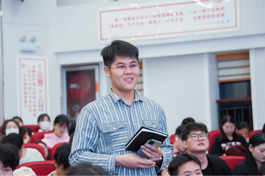 会议伊始,董方白就自己的求学经历和工作经验向大家简单进行了自我介绍。随后,她邀请在场同学参与热身活动,将现场的气氛烘托到了极致。随后,董方白以“爱自己是终身浪漫的开始”为主题展开了现场调查,通过思考“最欣赏自己的地方”来内省,引导同学认真地思考自己的优点,发现自己的闪光点,真正做到“悦己”;回答“如果我是一个……,我最想成为一个……”,增强学生对自己的认知;以介绍朋友的方式,挖掘他人的长处和优点,增进了相互之间的理解,进一步提高“悦人”的能力。结合真实案例和数据统计,董方白表示学生骨干存在的心理问题主要集中在人际交往障碍、学习竞争激烈和学生工作绩效等方面,对此,她围绕倾诉、放松、营养、兴趣和活动五个维度进行细致讲解,鼓励学生积极进行自我调适。最后,就心理健康的污名化问题,她郑重声明心理咨询面向的是正常人,要求大家正确对待自身的心理健康问题,真正地做到关爱自己,尊重他人。