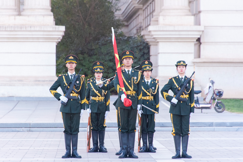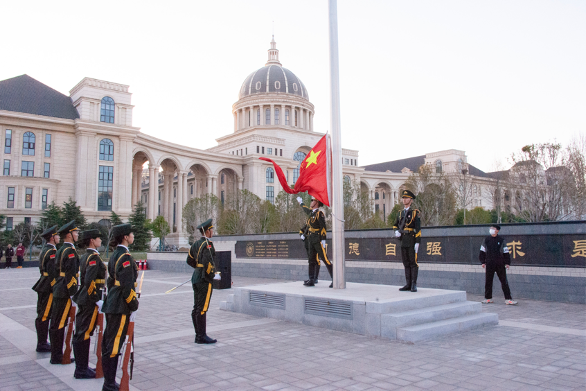 迎着清晨的第一缕阳光,国旗护卫队队员昂首挺胸,迈着整齐有力的步伐,护卫着鲜艳的五星红旗来到升旗台前。伴随着庄严的国歌声,五星红旗迎风飘扬,缓缓升起。全体师生面朝旗台齐唱国歌并向国旗行注目礼。