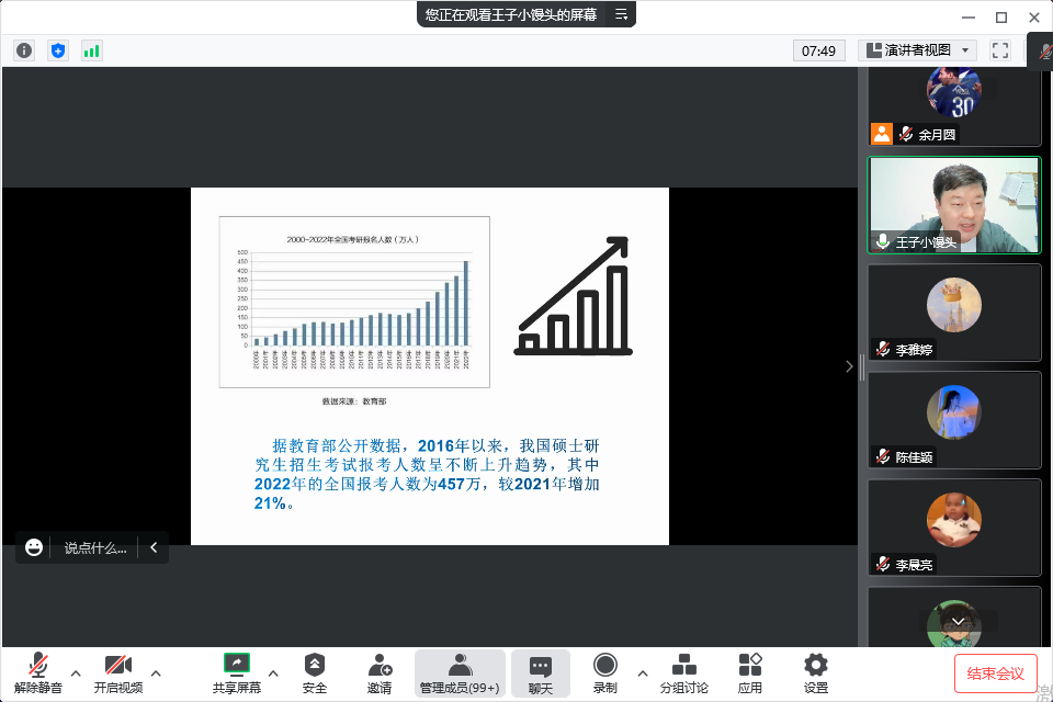刘瑞峰从国家近十年考研形势、学院近三年考研人数、学院近三年考研上岸学生成绩分布、温馨提醒等方面进行分析解读,帮助学生明确当前阶段的重点任务,引导学生探索、认知自我,帮助学生“精准定位”,他强调,选择和努力同样重要,考研选择一定要对自身水平有更加冷静和清晰的判断,切忌盲从,能否上岸关键在于是否坚定方向、坚持选择。另外,刘瑞峰也介绍了iQQtv