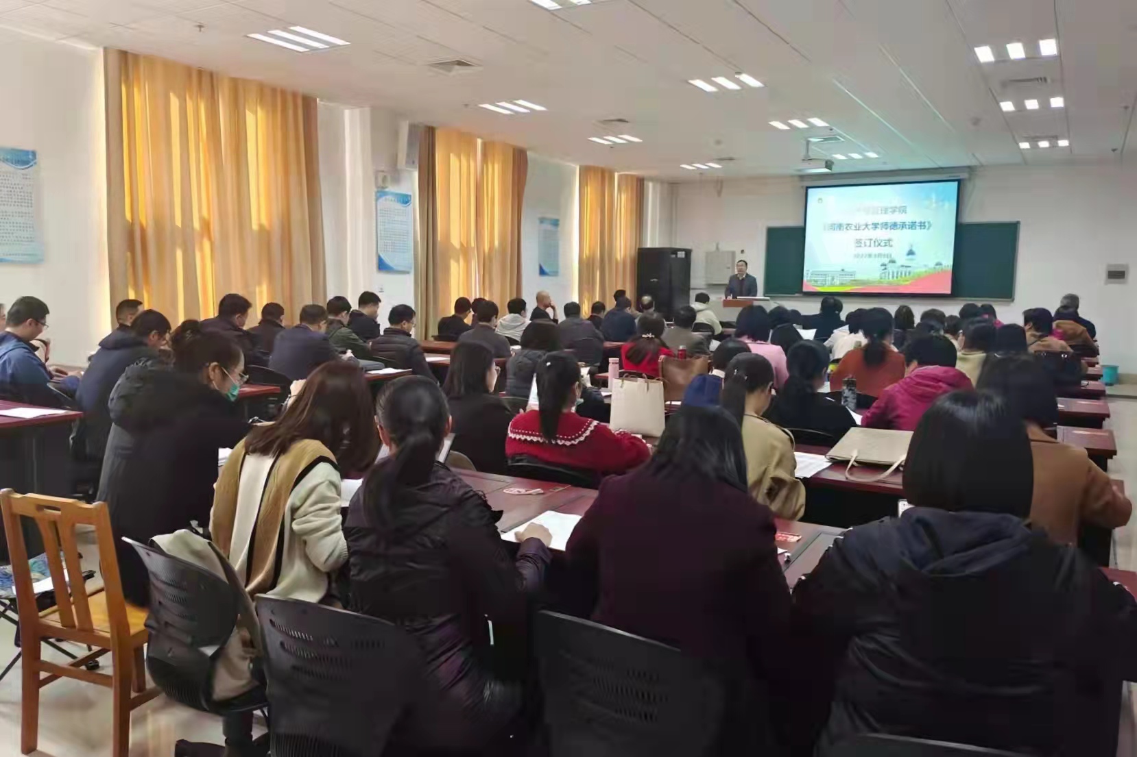 会上,全体教工在《河南农业大学师德承诺书》上签字,并做出了庄严承诺。