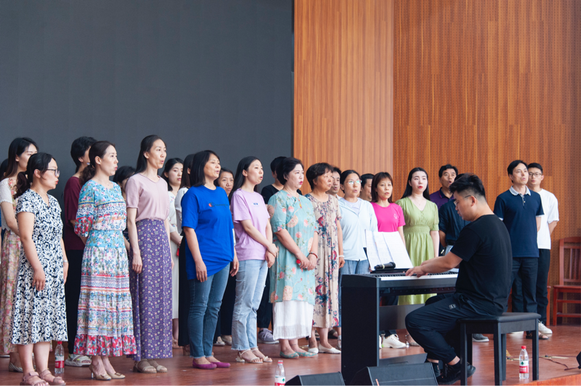 在上午的课程中,郝教授结合具体案例讲述掌握歌唱发声技巧对合唱的重要性。郝教授指出,合唱的发声与独唱的发声基本原理是一致的,合唱团成员学习发声技巧后,能够通过科学的实践和训练较好地发挥发声器官的功能,提高歌唱发音中的调控能力,取得理想的合唱整体效果。郝教授强调,有规律、有步骤的发声练习,有利于调整和巩固科学的发声状态,要把良好的歌唱状态带入到歌唱中去,使之成为符合歌唱发声的习惯和状态。下午的课程以实训为主,学院教职工积极参与,默契配合。