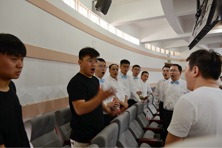 上午课程以马教授对选定曲目的创作背景和旋律特点的讲解拉开序幕。在教职工们对作品有了一定的了解后,马教授借助钢琴进行现场演示,详尽地讲解合唱中人声与钢琴伴奏的配合技巧,并对实践中存在的一些常见问题进行举例分析。马教授指出,合唱要正确处理好指挥、合唱团和钢伴之间的主被动关系。在合唱中,多数情况下指挥处于主导地位,但在前奏或者间奏中,钢伴则处于主导地位,钢伴的速度、力度、音色情绪等会对合唱整体表现效果产生重大影响。在演出过程中,会存在场地变化、团队成员心理压力增大等情况,要想演出效果尽善尽美,就要在平时的排练中多练习,通过不断地磨合提升团队成员的默契程度,在反复打磨作品的过程中,掌握技巧,累积经验。下午,马教授带领教职工进行实践训练,结合实践过程中出现的问题进行讲解分析。