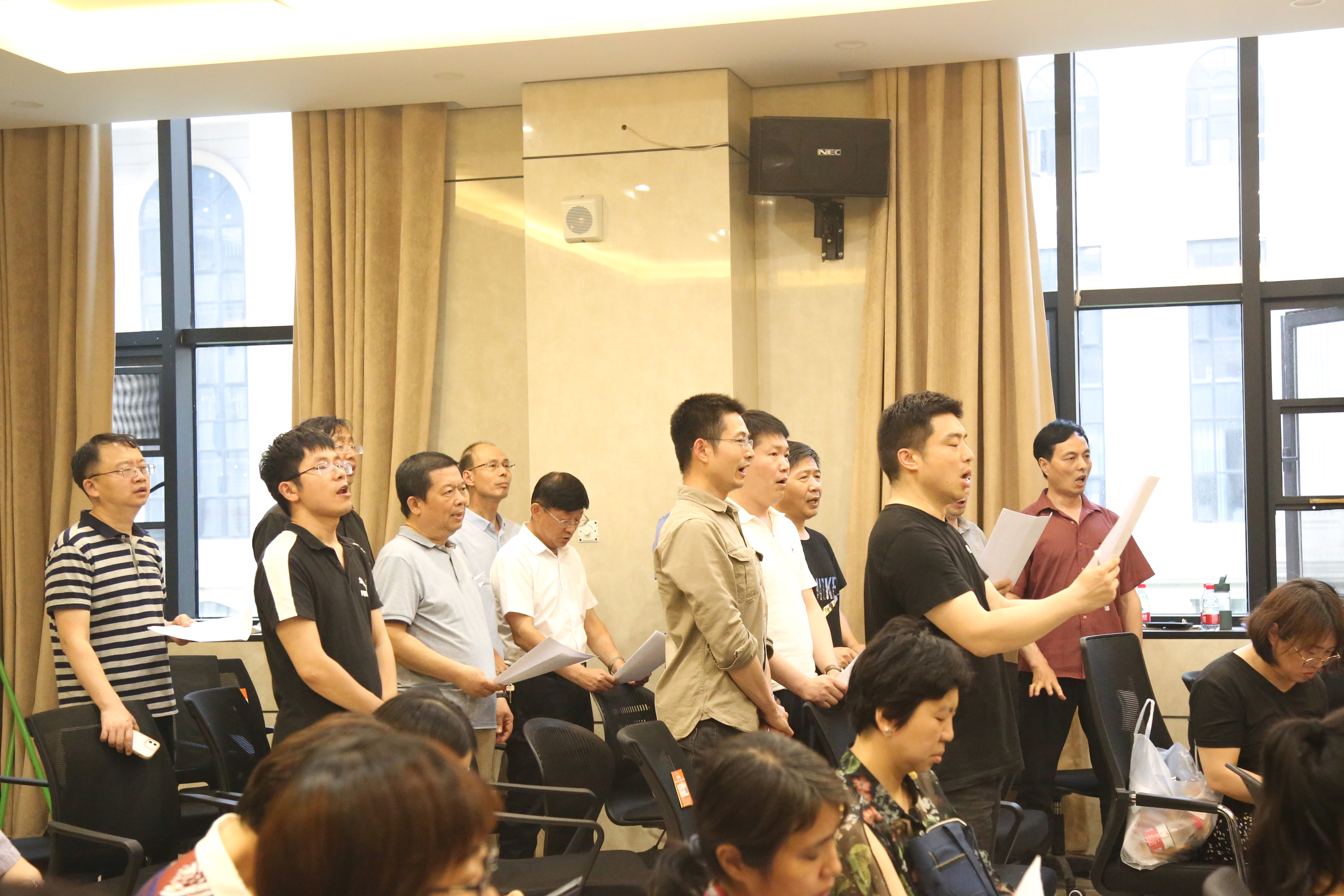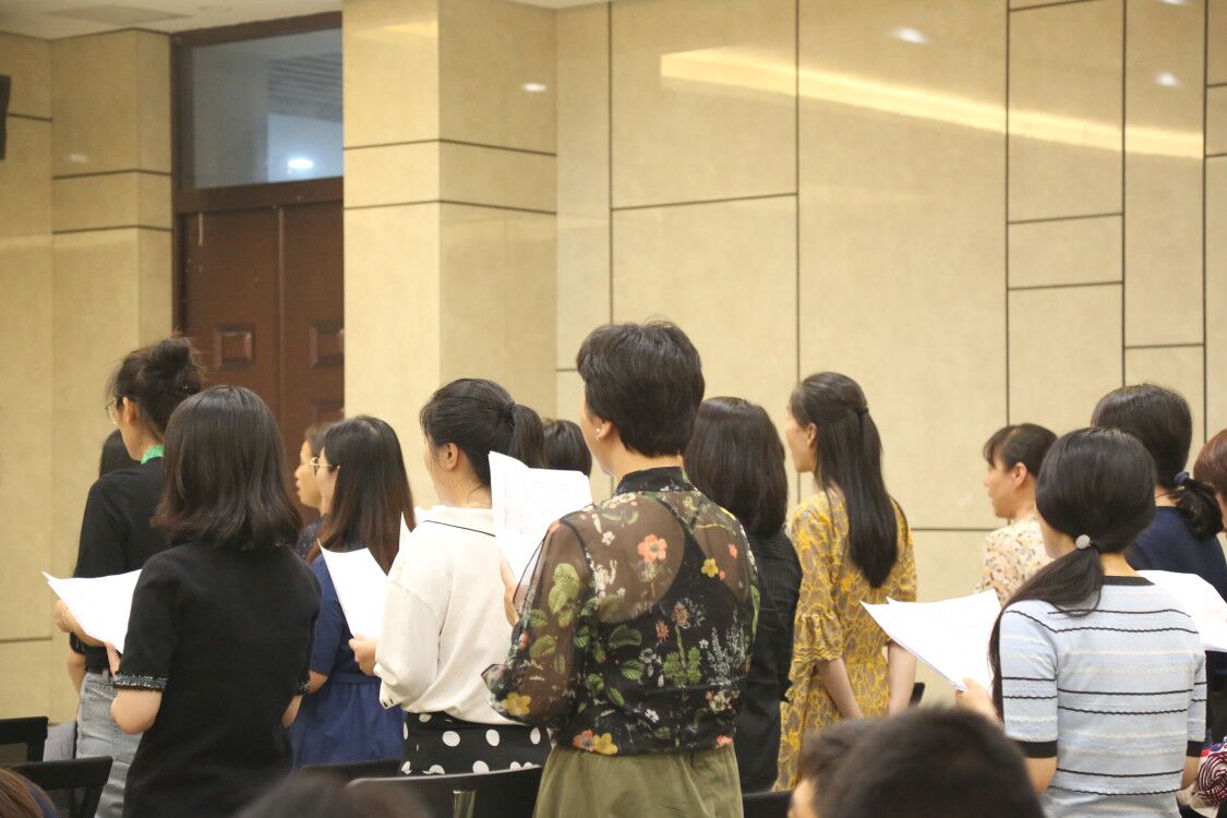 训练伊始,郝教授讲解了开嗓练声技巧,并带领教职工进行系统的发声练习。在练习过程中,郝教授对歌唱时的发音、呼吸、坐姿和站姿提出了要求,并利用“打哈欠”的方法带领教职工们建立声音的共鸣通道。在教职工们掌握歌唱技巧之后,大家进行了实唱练习。伴随着郝老师悠扬的琴声,教职工们放声高歌,热情饱满,各个声部配合默契。最后,本次合唱训练在全体教职工洪亮的歌声中落下帷幕。
