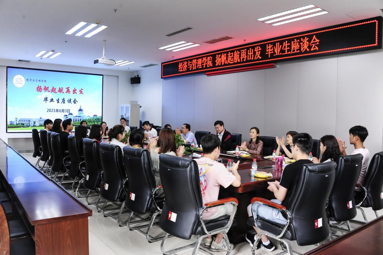 2021届毕业情况。随后,刘瑞峰清唱一首毕业之歌,正式拉开了本次座谈会的序幕,活跃了现场气氛。座谈会伊始,参会同学表达了自身对学校、学院的感恩、眷恋之情,也提出了一些有利于学院后续学生工作的建议,希望学弟学妹们继续努力,提前做好人生规划,缔造iQQtv