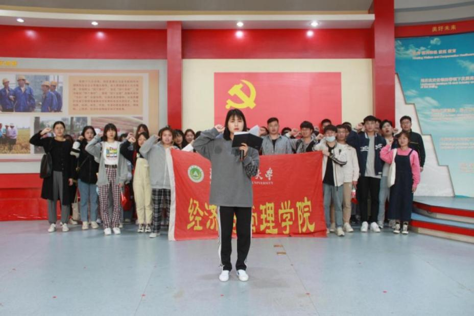 在参观学习过程中,同学们认真观看和讨论,一件件珍贵档案、文献资料和勋章,展现出了史来贺书记奉献一生的精神和坚定不移的信仰以及老一辈中国共产党人为初心而奋斗的使命担当。参观末尾学生党员重温了入党誓词,学生团员在杨春燕同学的领誓下,重温了入团誓词,广大学生接受了一次思想上的洗礼和深刻的党性教育。