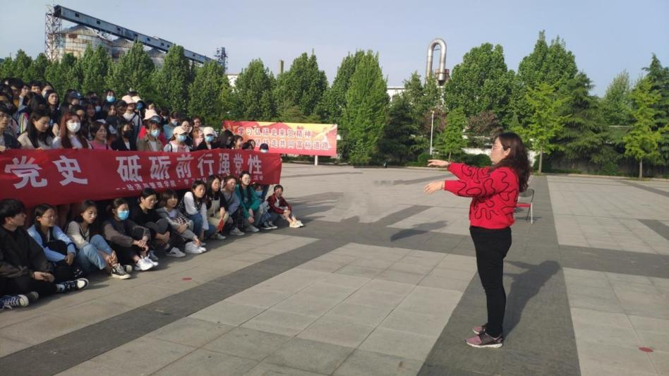 为了将党史教育有机融入课程学习,两位老师带领学生开展了多项课程实习活动:观看史来贺书记访谈片、重温入党誓词和入团誓词、老民兵讲述史来贺书记的传奇故事、诗歌朗诵史来贺精神、参观史来贺书记故居、课程的专题入户调研等。尤其值得一提的是,在刘宁老师的指挥下,全体一百五十名学生充满深情地高歌一曲《没有共产党就没有新中国》,歌声嘹亮、荡气回肠,为本次活动划上亮彩的一笔。