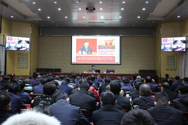 报告会以视频形式举行。市直各单位主要负责同志,市委党校教员等在主会场参加报告会。各乡镇全体班子成员、各村支部书记在分会场同步聆听了报告会。