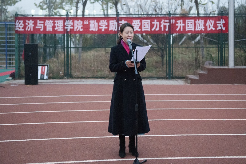 (通讯员:冯慧丽)为增强大学生国家意识,弘扬爱国主义精神,培育和践行社会主义核心价值观,学院组织18、19、20级全体本科生、研究生和部分教师近2000人,在龙子湖校区田径场举行“勤学励志,爱国力行”升国旗仪式。院党委书记牛青杨、院党委副书记方芳、副院长赵翠萍、赵友平和刘瑞峰出席此次升旗仪式。本次升旗仪式由院党委副书记方芳主持。