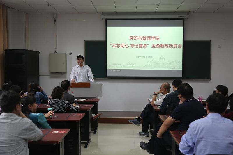在龙子湖校区B208会议室召开“不忘初心、牢记使命”主题教育动员大会。校党委副书记赵榴明出席会议并讲话,全院处级干部、各党支部书记和支部委员参加会议。会议由院长马恒运主持。