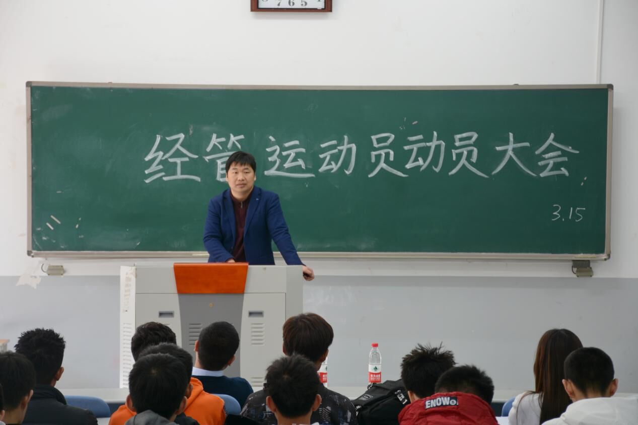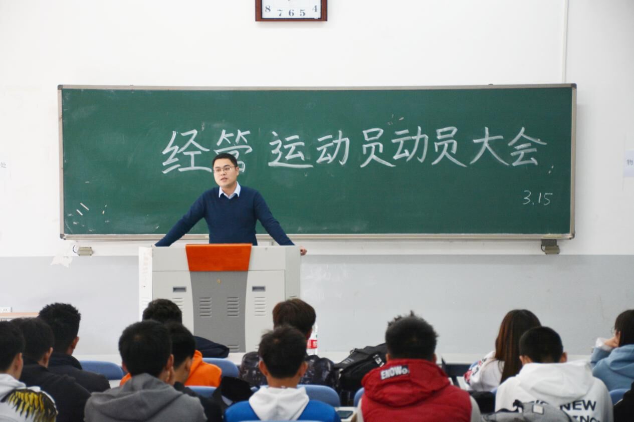 运动员刻苦训练。会上,王金铎老师首先对运动员们表达了自己的关怀,指出运动员们在坚持训练的同时,更要做好安全防护工作。王金铎老师还以往届优秀毕业生为例,强调了在运动会训练在毅力锻炼方面的重要意义,并鼓励同学们积极对待训练。随后,杨鑫老师提出了在运动员训练期间学生会的工作要求,他强调,各部门应坚守岗位,做好后勤保障工作。同时,杨鑫老师还希望运动员们能树立集体荣誉感,不辜负自己的付出与努力,并祝愿运动员们在比赛中取得优异成绩,为自己争光,为学院争光。最后,各项目负责人上台发言,分别从心态和身体健康方面为运动员们提出建议,此次动员大会在同学们热烈的掌声中落下帷幕。