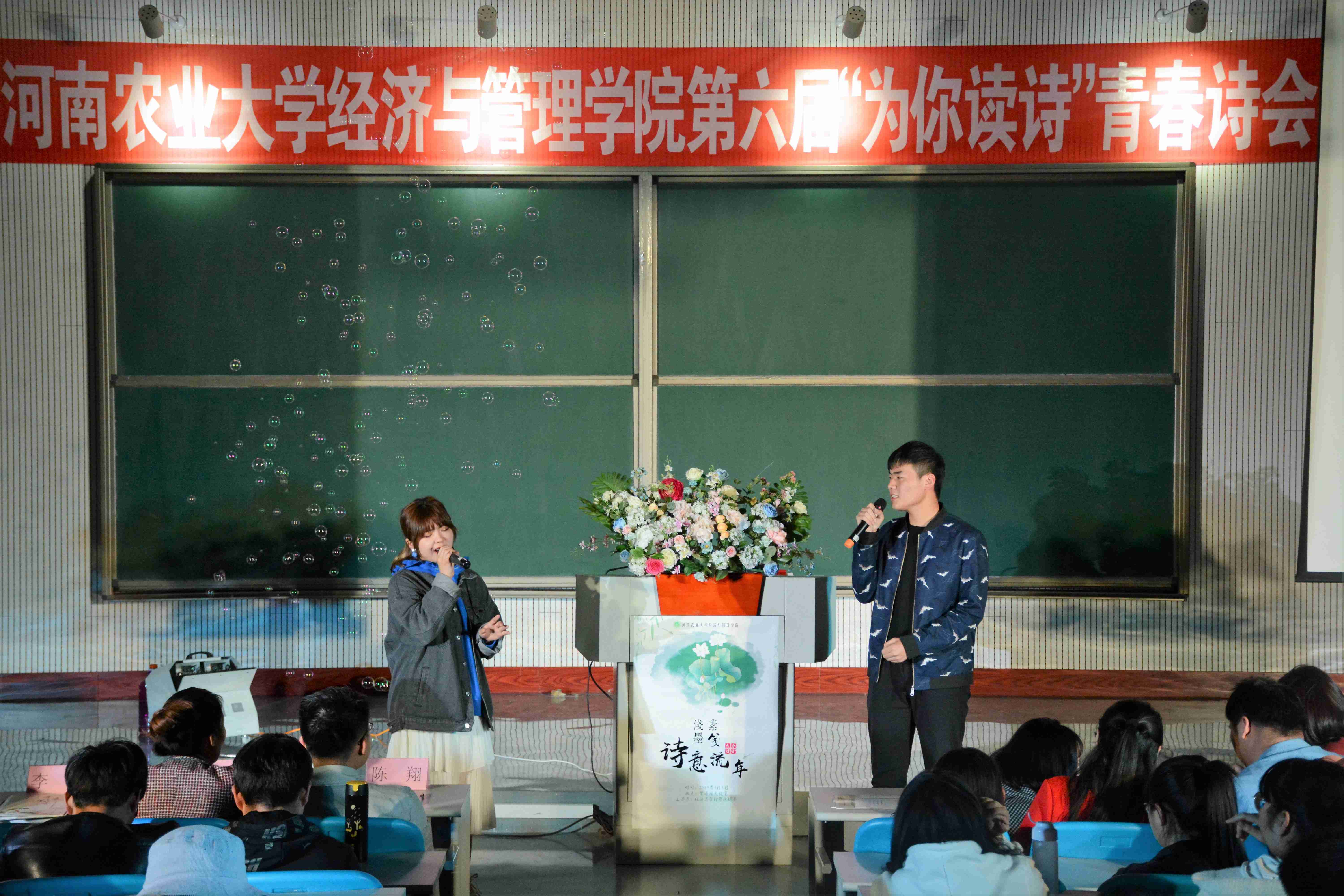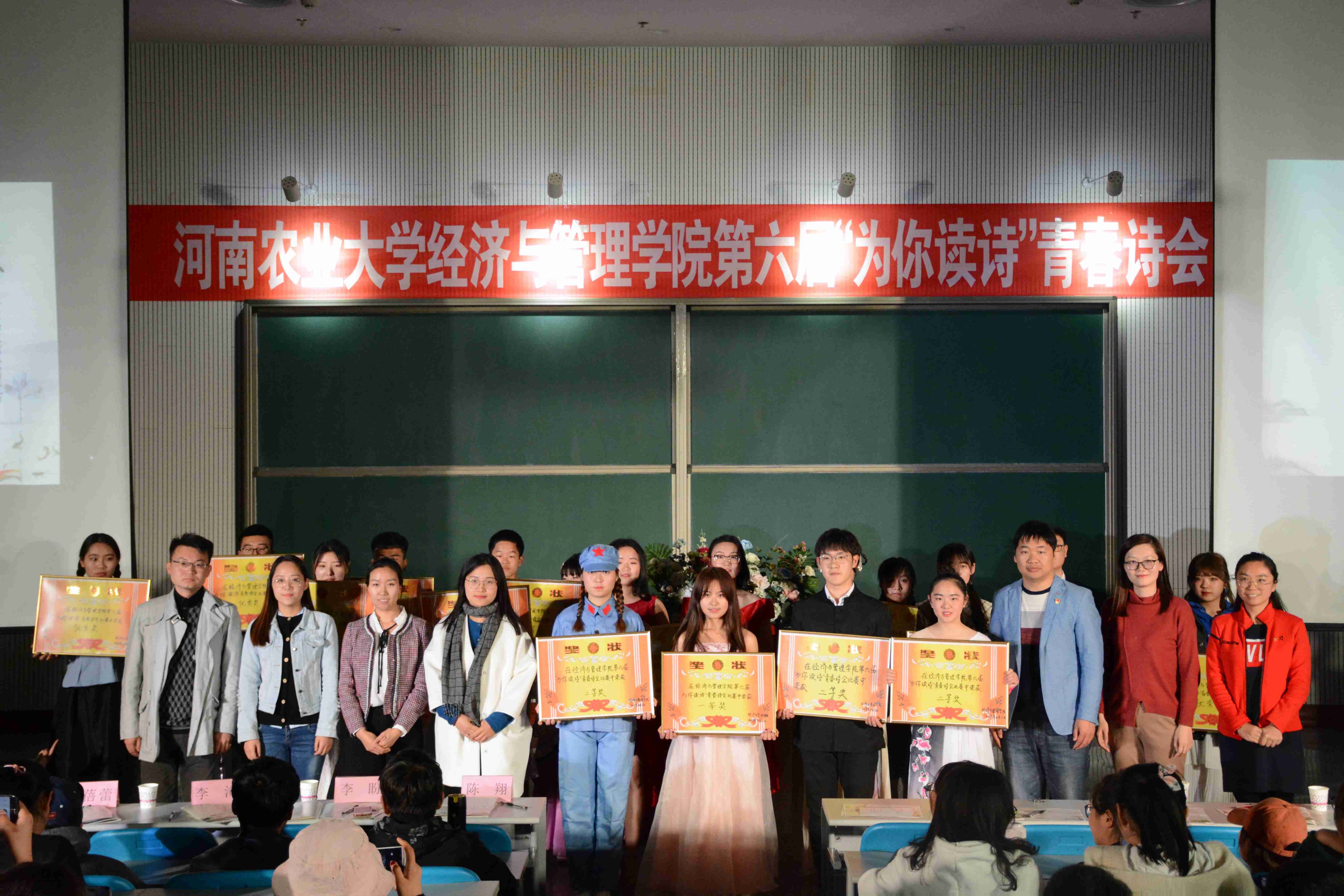 4月3日,iQQtv 第六届“为你读诗”青春诗会决赛在繁塔楼大教室二举办。大学生心理健康教育中心副主任乔蓓蕾、外国语学院团委书记李沛、农学院辅导员李盼、牧医工程学院辅导员陈翔、信息与管理科学学院辅导员王肖肖作为评委到场出席,iQQtv 团委老师到场观看,17、18级学生积极参加此次比赛。