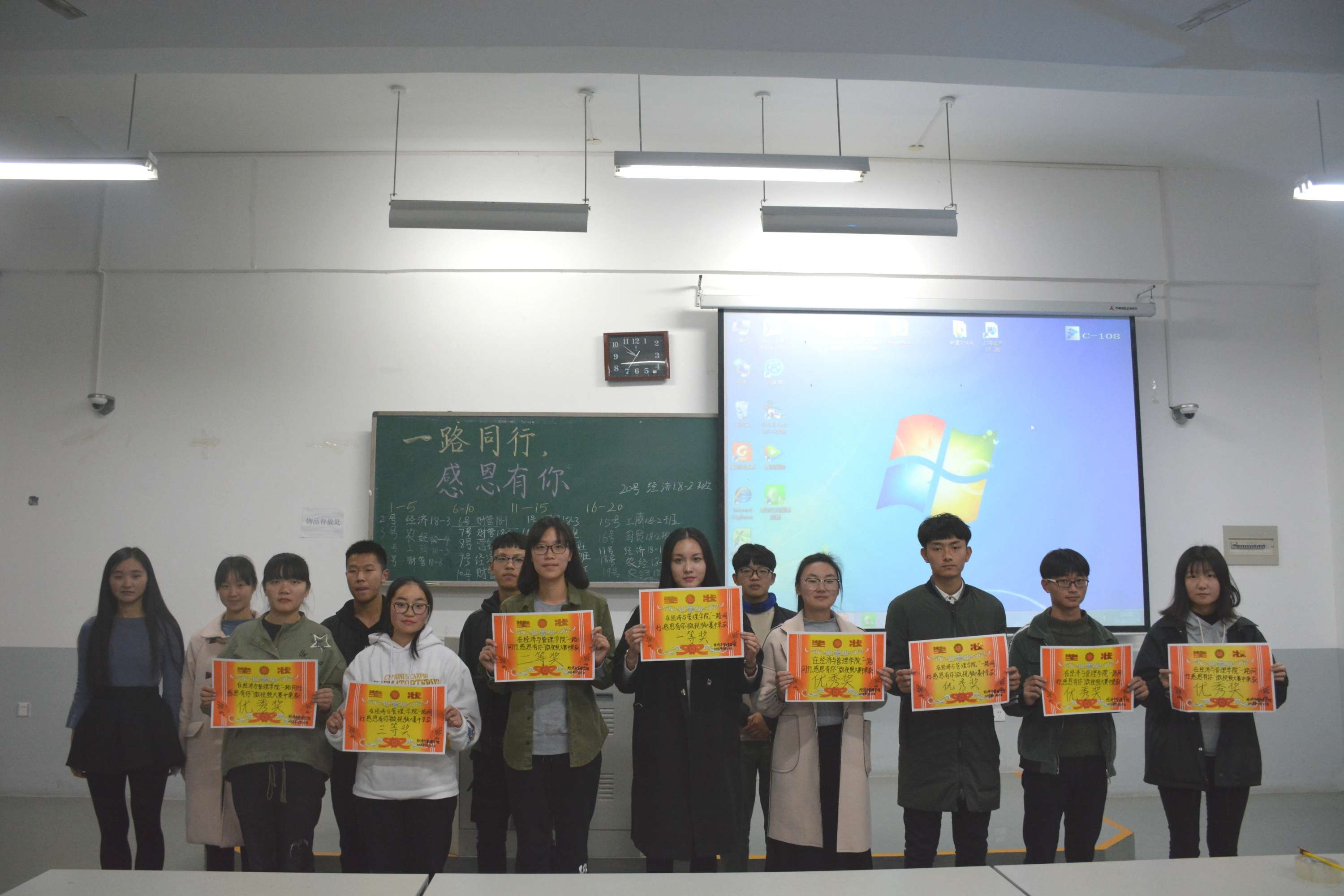 本次微视频有奖征集活动以“一路同行,感恩有你”为主题。在主持人精彩的开场白后,活动正式拉开帷幕。首先,主持人介绍了本次活动的评分细则。接着,各小组按抽签顺序依次上台展示,微视频风格丰富多样,分别从不同角度表达了感恩之心。同时,各组代表还讲解了视频拍摄背后的故事。现场观众认真倾听,现场气氛活跃热烈。随后,进入游戏环节,同学们的积极配合再次将活动氛围推向高潮。最后,经过公开、公平、公正的评选,经济18-2班获得一等奖,工商18-2班获得二等奖,营销18-2班获得三等奖,国贸18-3班、农经18-2班、经济18-3班、经济18-4班、经济18-1班、财管18-1班获得优秀奖。