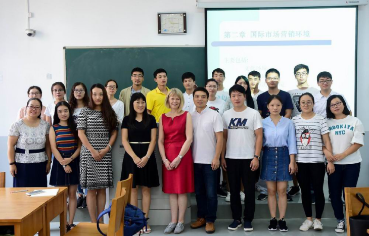 9月14日上午,在龙子湖校区教学楼D109教室内,由刘宁老师主讲的《新制度经济学》和宋宇老师主讲的《国际市场营销(双语)》教学活动精彩进行中,学生们三五人一组,讨论热烈,老师不时参与小组讨论,现场答疑解惑。其中,还有从新西兰梅西大学教育学院远道而来的