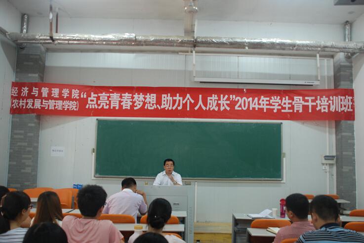 2014年学生骨干培训班并为全体学生骨干作辅导报告。院团委书记郭娟、副书记王金铎、团委老师杨鑫、黄妍、杜世杰及全体学生干部参加此次报告会。会议由郭娟老师主持。