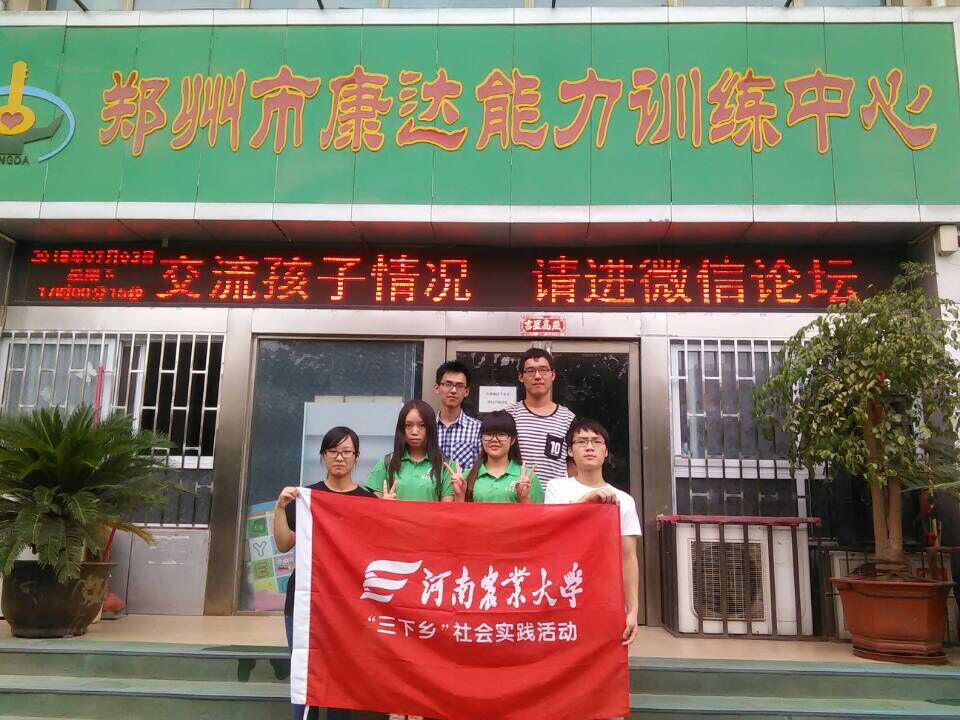 赴郑州康达自闭中心教育关爱服务团,以“关爱弱势群体,还他们纯真的笑容”为口号,开展了为期2天的暑期社会实践活动。