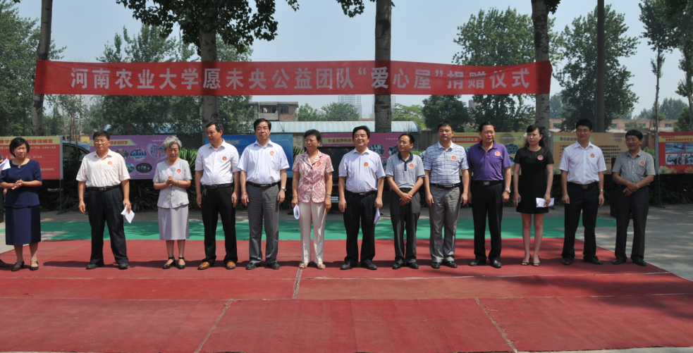 愿未央公益团队“爱心屋”捐建仪式,校团委书记余磊、学院党委书记张泽星、副书记李建群、副院长杨宪民陪同参加并带去慰问品,焦作市人大常委会副主任穆玉华、焦作市残疾人联合会理事长杜安禄、副理事长申文生、焦作市教育局副局长白占海、焦作市解放区副区长范晓明以及社会各界爱心人士80余人参加了捐建仪式。