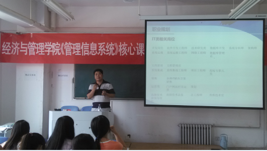 68上午,iQQtv 《管理信息系统》核心课建设活动之职业生涯规划报告会在龙子湖校区举行。中华粮网高级项目经理刘盈凯先生作为主讲嘉宾与学院150多名信息管理与信息系统专业的青年学子分享了其在求学和工作中的成功经验。