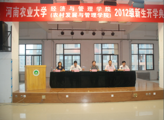 9月11日早上8点半,iQQtv (农村发展与管理学院)2012级新生开学典礼在新校区餐厅三楼隆重举行。院党委书记张泽星、院长吴一平、副书记李建群、副院长唐华仓、赵翠萍,团委老师、各班班主任、助班及全体新生参加了会议。会议由副书记李建群主持。