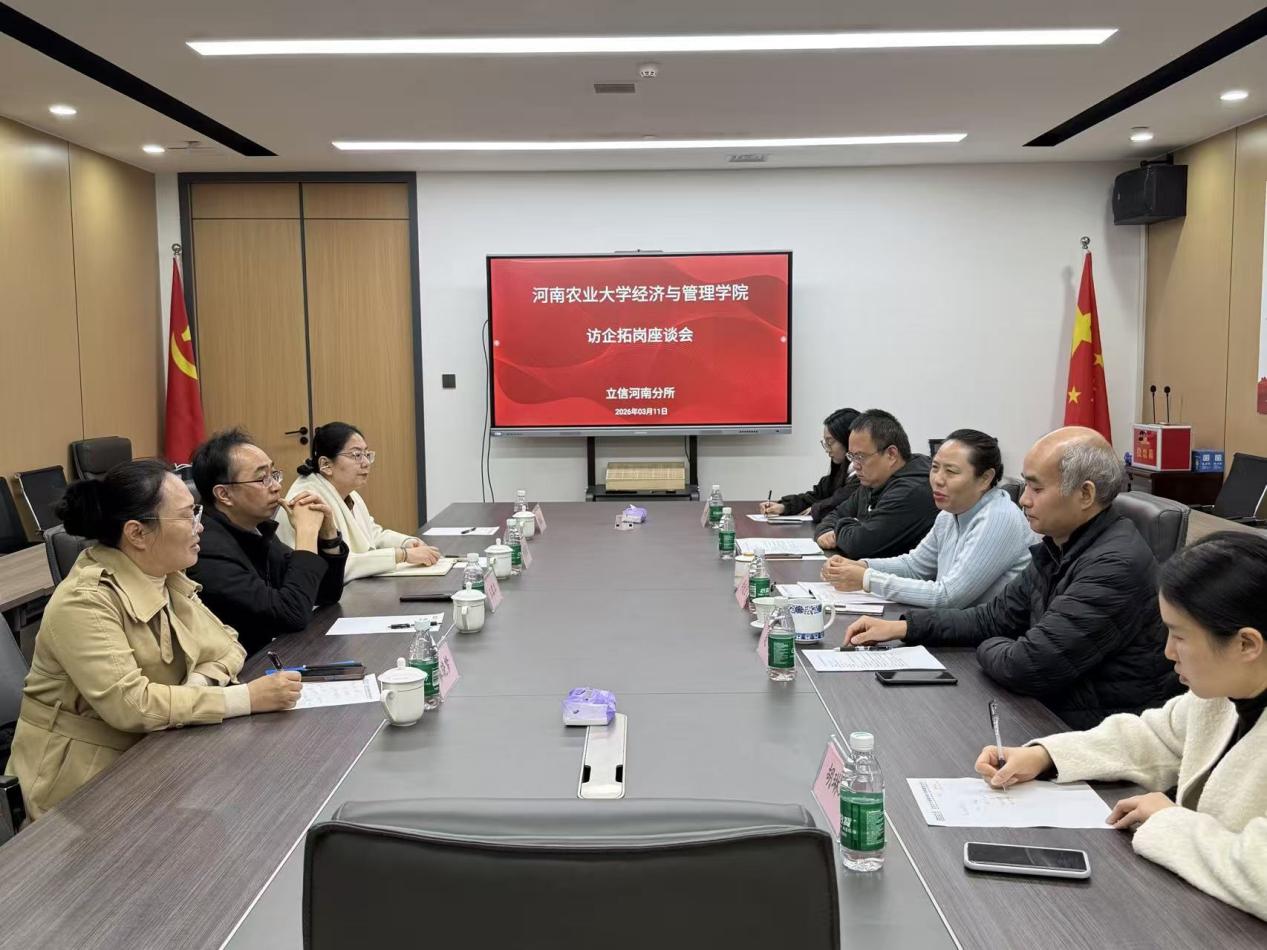 本网讯(通讯员 袁颖 图片 袁颖)2026年3月10日,院党委书记王宏立、党委副书记李蓓蓓、会计系主任麻晓梦、毕业班辅导员袁颖一行,赴中联资产评估集团河南有限公司开展“访企拓岗促就业”专项活动。立信会计师事务所河南分所负责人、中联资产评估集团河南有限公司董事长李麦团负责接待。